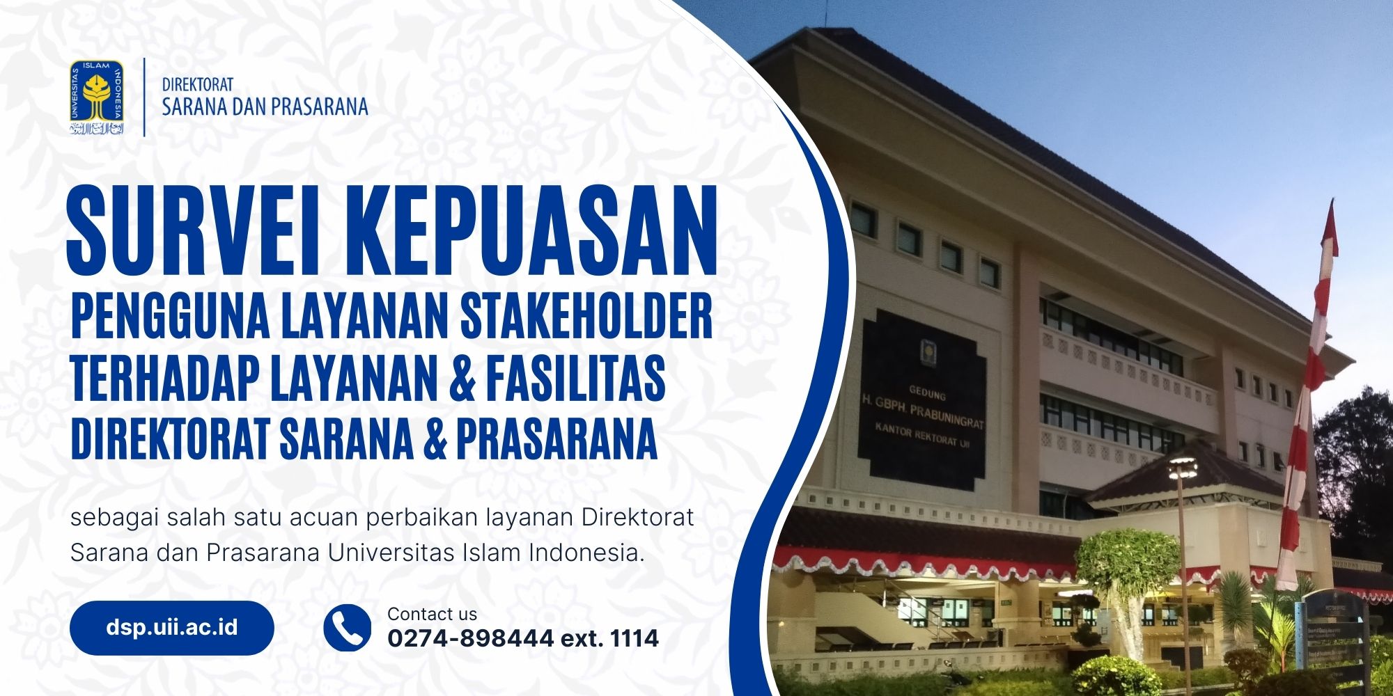 Direktorat Sarana dan Prasarana (DSP) UII adalah unit yang mengelola dan merawat fasilitas di kampus terutama di bawah lingkup rektorat. Kami bertanggung jawab dalam pengadaan barang dan jasa, rumah tangga, serta inventarisasi aset yang terdiri dari perencanaan, pengembangan, kebersihan, keamanan, dan keberlanjutan kampus.